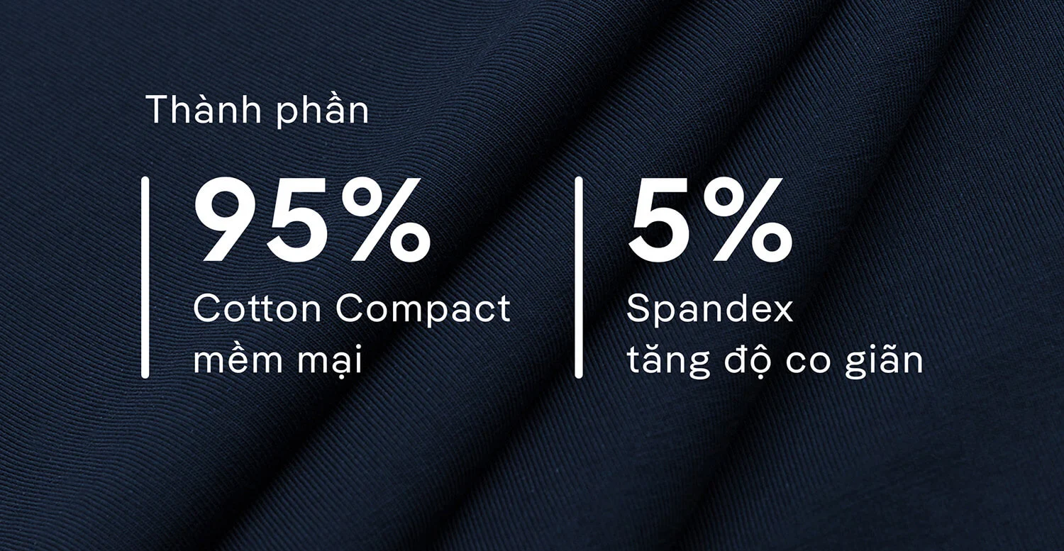 - Chất liệu: 95% Cotton Compact – 5% Spandex